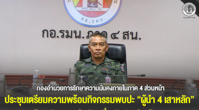 กองอำนวยการรักษาความมั่นคงภายในภาค 4 ส่วนหน้า ประชุมเตรียมความพร้อมกิจกรรมพบปะ “ผู้นำ 4 เสาหลัก” เสริมสร้างพลังมวลชนร่วมขับเคลื่อนสันติสุขก่อนห้วงรอมฎอน