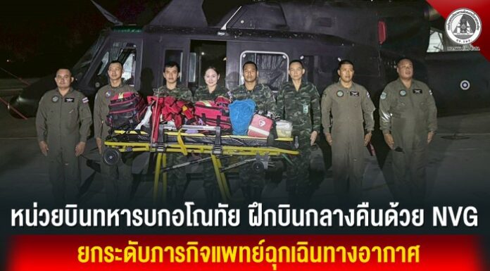หน่วยบินทหารบกอโณทัย จัดอากาศยาน เฮลิคอปเตอร์ (ฮ.ท.212) ดำเนินการฝึกบินด้วยกล้องช่วยมองเห็นในเวลากลางคืน (Night Vision Goggles : NVG) ร่วมกับชุดแพทย์ส่งกลับทางอากาศ จากศูนย์แพทย์จังหวัดชายแดนภาคใต้ เพื่อเพิ่มขีดความสามารถในการช่วยเหลือผู้ป่วยฉุกเฉินและการปฏิบัติภารกิจในสภาวะแสงน้อย