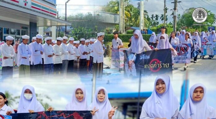 ชาวกาบังรวมพลังต่อต้านความรุนแรง! หน่วยเฉพาะกิจกรมทหารพรานที่ 47 นำเครือข่ายเยาวชนและกลุ่มสตรี รณรงค์สร้างสันติสุข หลังเหตุการณ์ความไม่สงบในพื้นที่