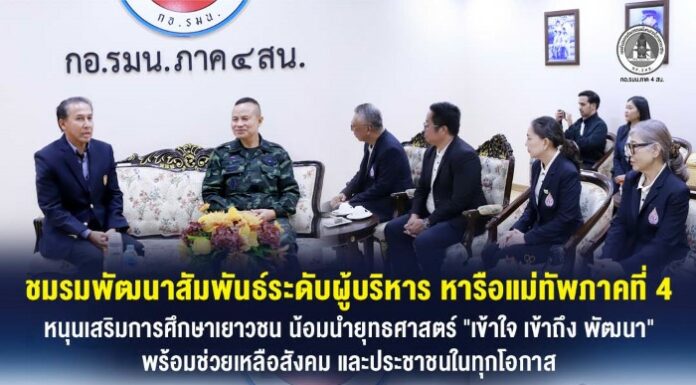 ชมรมพัฒนาสัมพันธ์ระดับผู้บริหาร หารือแม่ทัพภาคที่ 4 หนุนเสริมการศึกษาเยาวชน น้อมนำยุทธศาสตร์ “เข้าใจ เข้าถึง พัฒนา” พร้อมช่วยเหลือสังคม และประชาชนในทุกโอกาส
