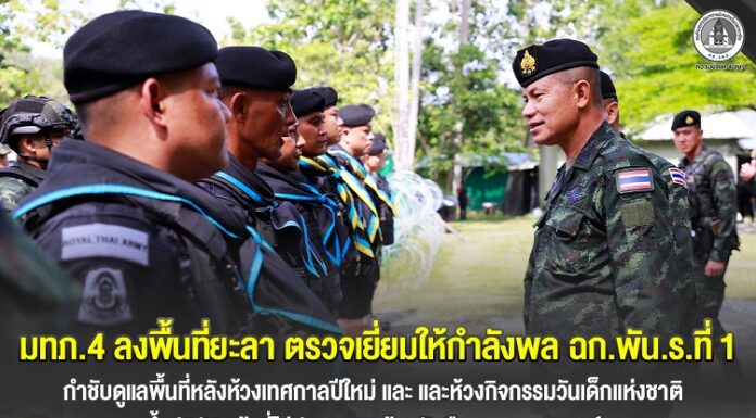 มทภ.4 ลงพื้นที่ยะลา ตรวจเยี่ยมให้กำลังพล ฉก.พัน.ร.ที่ 1 กำชับดูแลพื้นที่หลังห้วงเทศกาลปีใหม่ และห้วงกิจกรรมวันเด็กแห่งชาติ ย้ำปฏิบัติหน้าที่ไม่ประมาท พร้อมรับมือทุกสถานการณ์