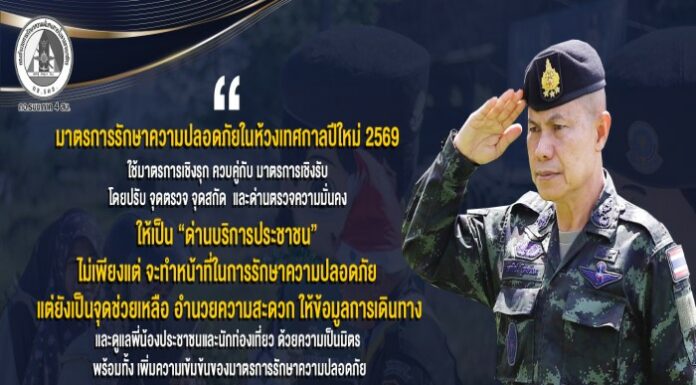 รองโฆษก กอ.รมน.ภาค 4 สน. นำความห่วงใยของแม่ทัพภาคที่ 4 พร้อมมาตรการรักษาความปลอดภัยพี่น้องประชาชน ในห้วงเทศกาลปีใหม่ ประจำปี 2569