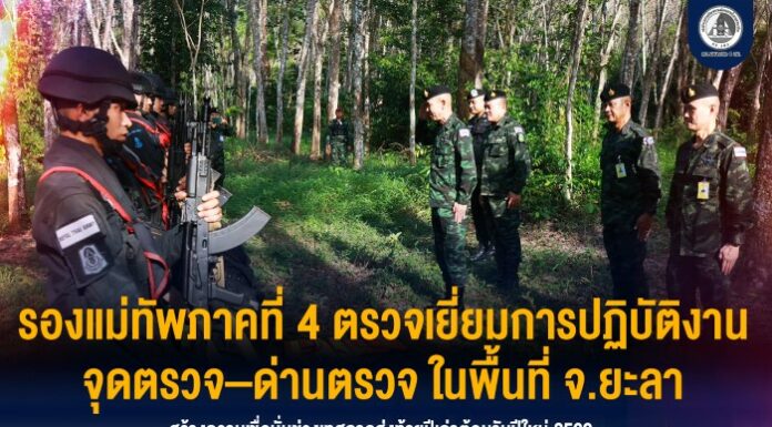 รองแม่ทัพภาคที่ 4 ตรวจเยี่ยมการปฏิบัติงานจุดตรวจ–ด่านตรวจในพื้นที่ จ.ยะลา สร้างความเชื่อมั่นช่วงเทศกาลส่งท้ายปีเก่าต้อนรับปีใหม่ 2569