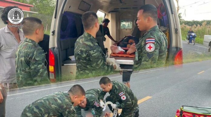 วันที่ 23 ธันวาคม 2568 เวลา 17.45 น. กองพันเสนารักษ์ กรมสนับสนุน กองพลทหารราบที่ 15 ระหว่างปฏิบัติภารกิจสนับสนุนชุดพยาบาล ในงานแข่งขันกีฬาสานสัมพันธ์ กองพันอาสารักษาหมู่บ้าน (อรบ.) พื้นที่อำเภอสะบ้าย้อย จังหวัดสงขลา และขณะเดินทางกลับ ได้พบเหตุรถจักรยานยนต์ชนกับรถยนต์ บนถนนหมายเลข 4085 มีผู้ได้รับบาดเจ็บ 1 ราย เป็นชาย อายุประมาณ 60 ปี