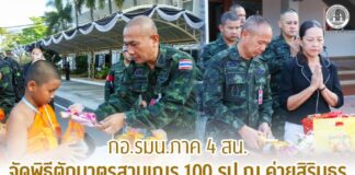 กอ.รมน.ภาค 4 สน. จัดพิธีตักบาตรสามเณร 100 รูป ณ ค่ายสิรินธร เสริมสิริมงคลและสืบสานพุทธศาสนาชายแดนใต้
