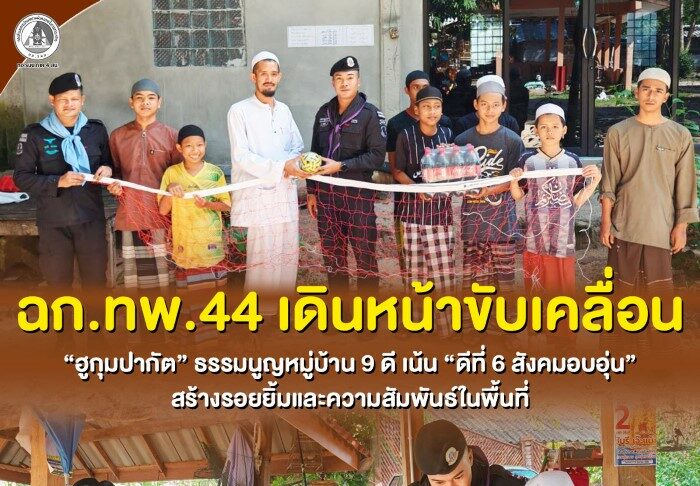วันที่ 22 เมษายน 2569 หน่วยเฉพาะกิจกรมทหารพรานที่ 45 ร่วมกับกลุ่มดาหลาบารู ลงพื้นที่มอบอุปกรณ์กีฬาให้แก่น้อง ๆ โรงเรียนอัลมิสบาฮูลมูนิร์ บ้านลาแป ตำบลบองอ อำเภอระแงะ จังหวัดนราธิวาส เพื่อส่งเสริมสุขภาพกายและสุขภาพใจ สร้างความสามัคคี และเปิดพื้นที่สร้างสรรค์ให้เยาวชนใช้เวลาว่างให้เกิดประโยชน์ พร้อมสานสัมพันธ์อันดีระหว่างเจ้าหน้าที่กับชุมชนอย่างต่อเนื่อง