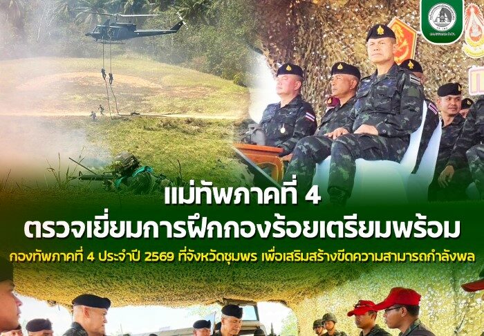 แม่ทัพภาคที่ 4 ตรวจเยี่ยมการฝึกกองร้อยเตรียมพร้อม กองทัพภาคที่ 4 ประจำปี 2569 ที่จังหวัดชุมพร เพื่อเสริมสร้างขีดความสามารถกำลังพล